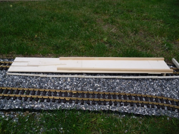 Ich habe deshalb den gestrigen verregneten Sonntag mit dem Bau eines Aufgleiskeils verbracht. Als Vorlage diente ein N-Aufgleiskeil von Arnold. Holzresten waren vorhanden, so dass die Idee umgesetzt werden konnte.