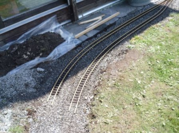 Nach Abschluss der Malerarbeiten kann eingeschottert und das Gleis verlegt werden. Bei Bedarf kann man das Gleis auch anschrauben.
