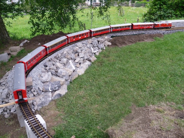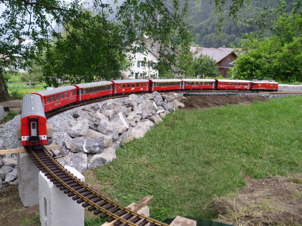 Streckenausbau abgeschlossen und ausgetestet. 2 GE 4/4; 1 Ge 6/6 Krok; und der Triebwagen ABe 4/4 sind digitalisiert und fahren einwandfrei. Eine 5. Lok ist in Vorbereitung und die 6. ist noch im Trockendock...
