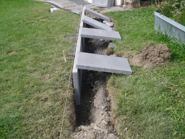 Seitlich wird die Tunnelwand mit Betongehwegplatten (60/40/4cm) erstellt.