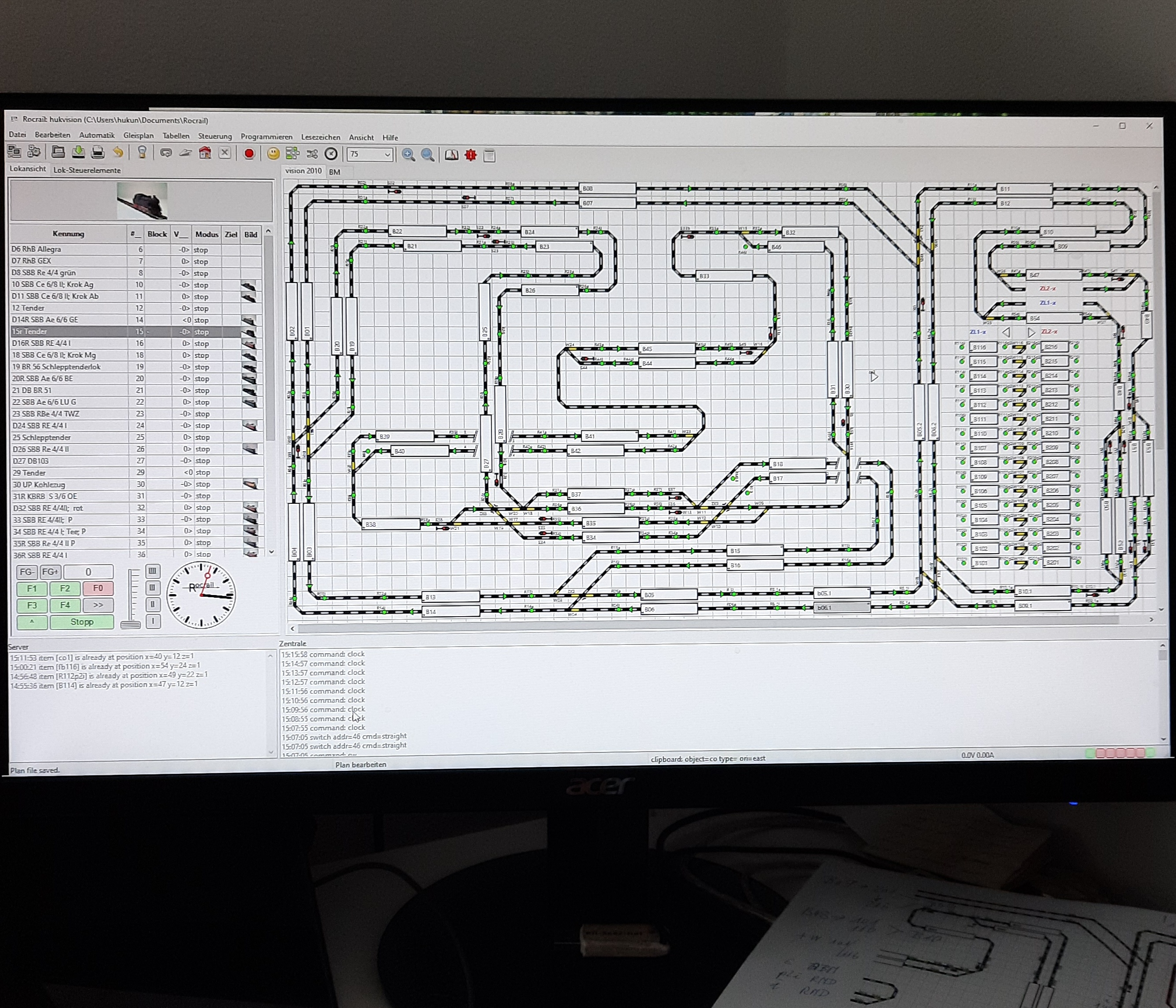 - Die Zug-Steuerung erfolgt mit RocRail, vorzugsweise im Automode.