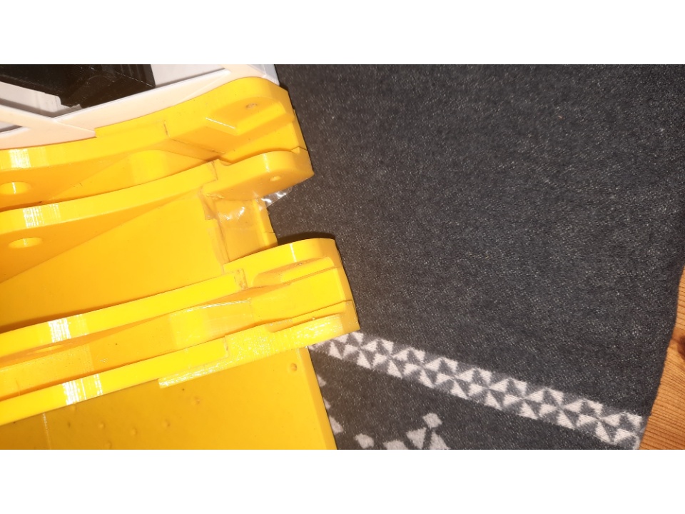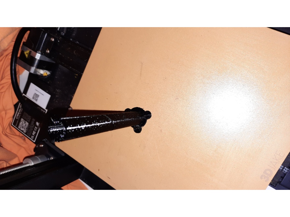 Die Führung wird senkrecht gedruckt. Damit sie beim Druck nicht "kippt" hat sie 3 Stützfüsse, die nach dem Druck abgeschnitten werden. Bild 7 / 8 / 9