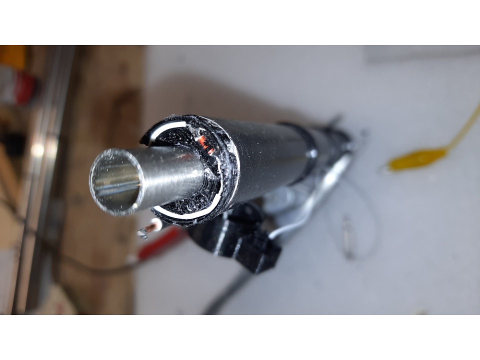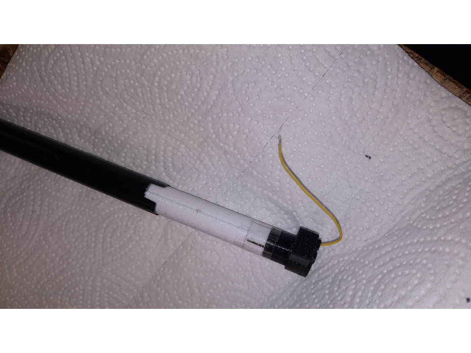 Edelstahlrohr DA 9mm, Wandstärke 0.5mm. Das Rohr bildet die Stossstange und wird auf die gewünschte Länge gekürzt. Bild 10