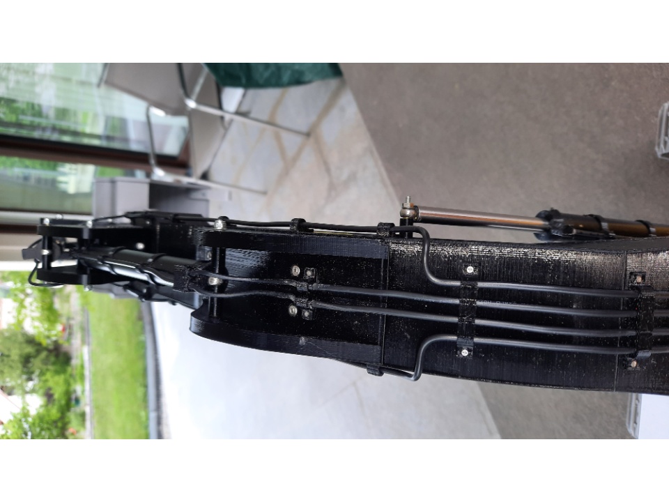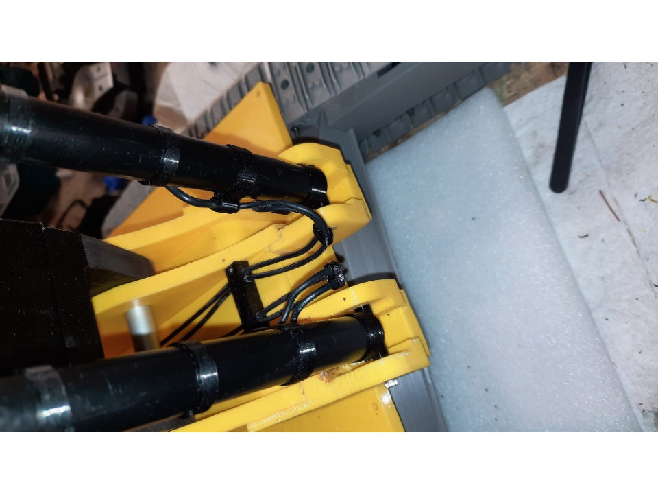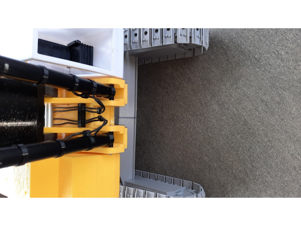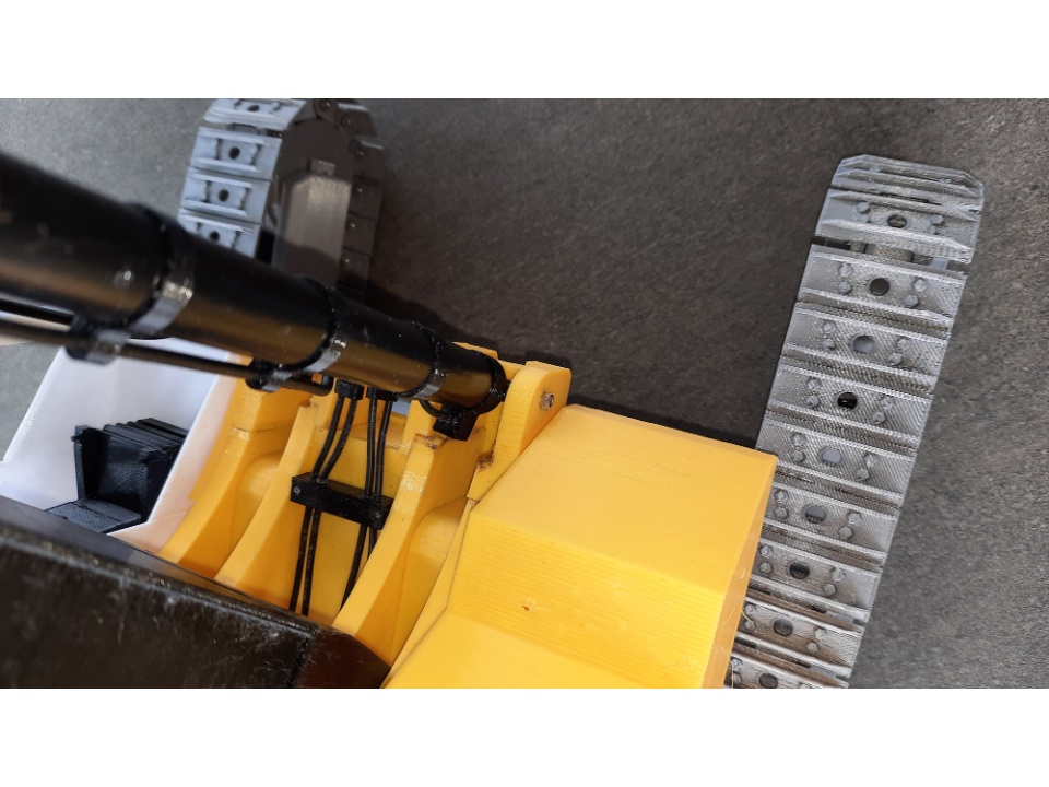 Übergangsstücke und Rohrleitungshalterungen habe ich als Manschette gedruckt und werden über den Zylinder gestülpt. Für den Baggerarm habe ich Führung zum festschrauben gedruckt. Bild 7